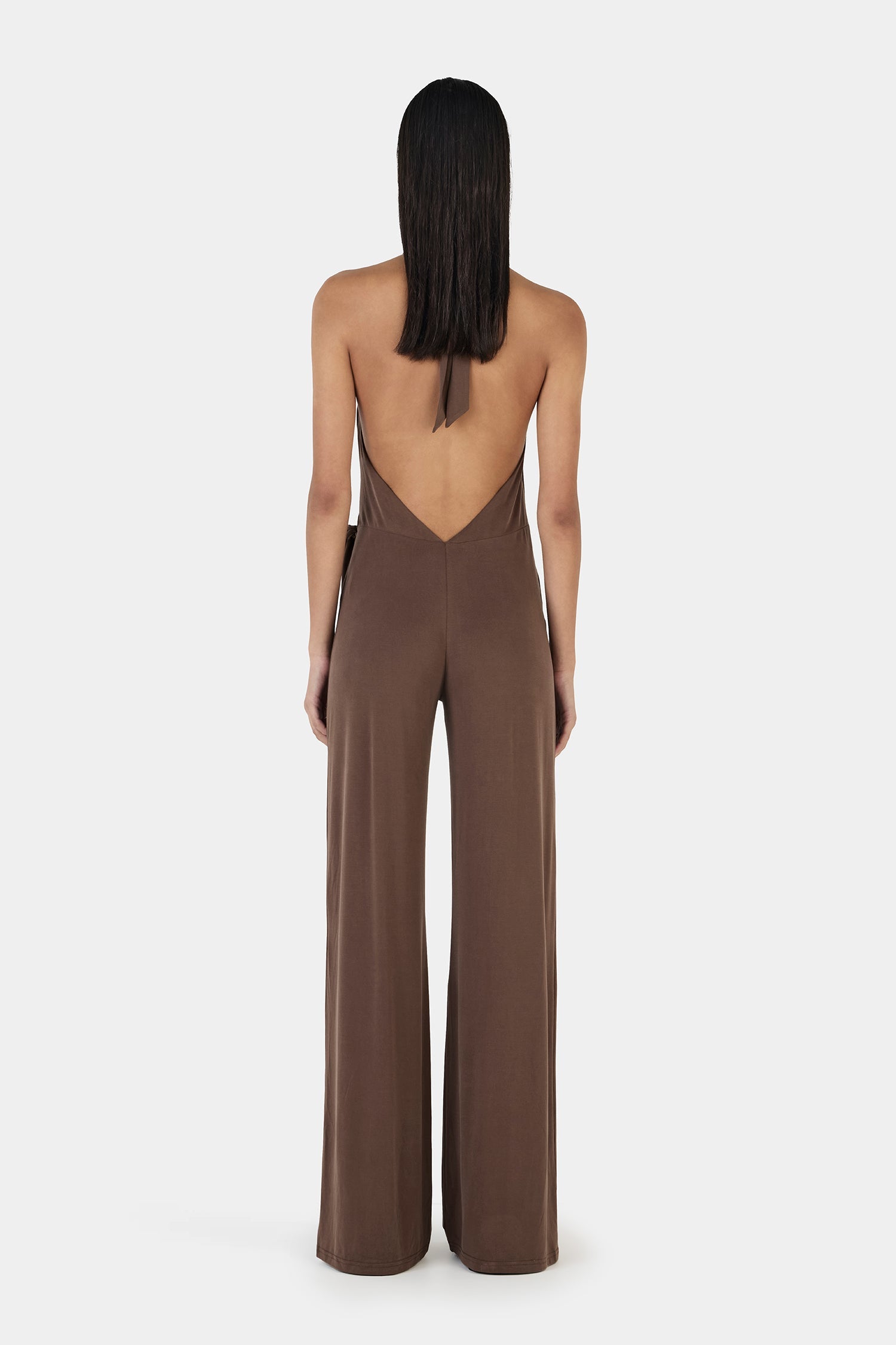 The Astrid Jumpsuit is a halter neck, wide leg jumpsuit cut from a soft cupro jersey fabrication. The jumpsuit has a plunge V neckline and a wrap over front bodice detailing and an angled low back. Dress up or down the Astrid Jumpsuit can take you from day to night.