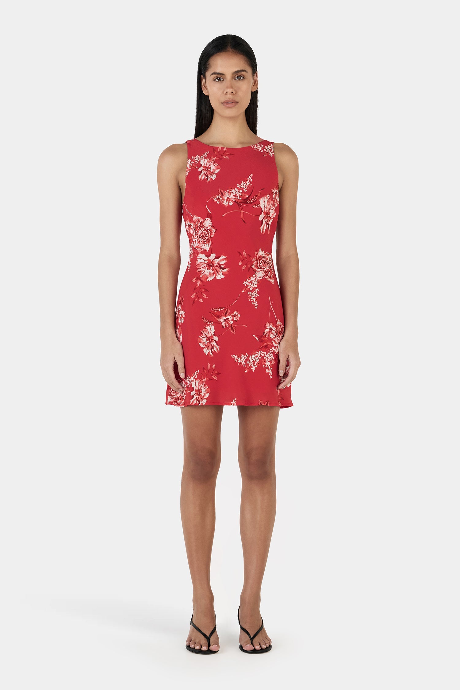 The Tori Dress is a mini-length style featuring a rounded high scoop neckline and wide shoulder straps, balanced by a low crossover detail at the back. Fully lined for comfort and coverage, it’s an effortless option for both day and night.
